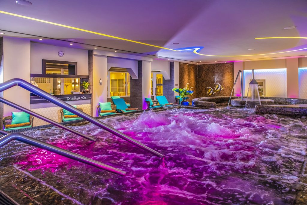A színes hangulatfények mellett nyakzuhany, derék és vállmasszázs, buzgár, pezsgőágy és sodrófolyosó várja Vendégeinket.